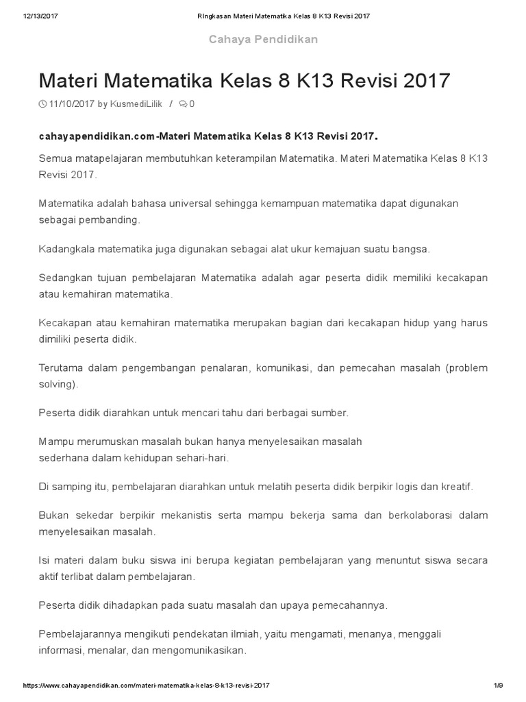 Materi mtk kelas 8 semester 1 kurikulum 2013. Maybe you would like to learn more about one of these? We did not find results for: Check spelling or type a new query.